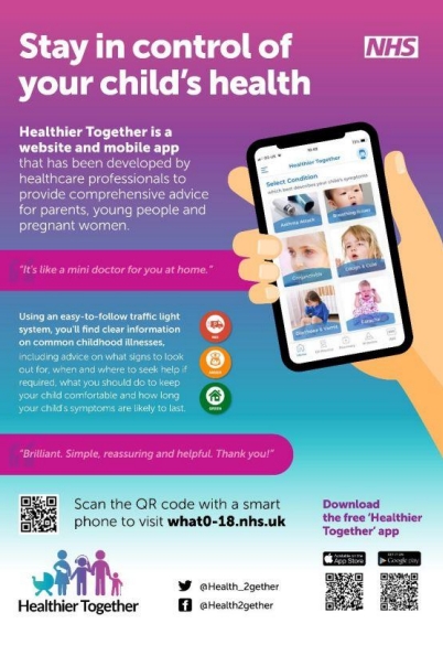 Visit the Should your child go to school/nursery today? website at https://what0-18.nhs.uk/parentscarers/worried-your-child-unwell/child-unwell-ok-go-nurseryschool or go online and search for ‘0-18 should child go to school’. Please bookmark this website so it is easy to find if ever your child becomes unwell.